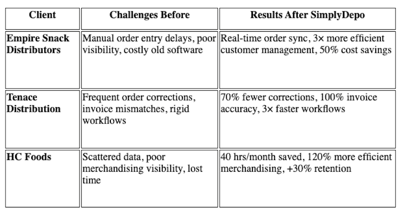 With real case studies proving 70% fewer errors, 40 hours saved per month, and stronger customer retention, SimplyDepo gives distributors a clear path to modernizing their operations.