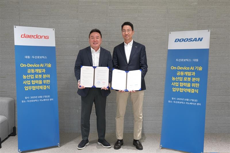 Doosan Robotics has signed an agreement with agritech company Daedong to jointly develop on-device AI technology and business collaboration in the agricultural robotics sector.