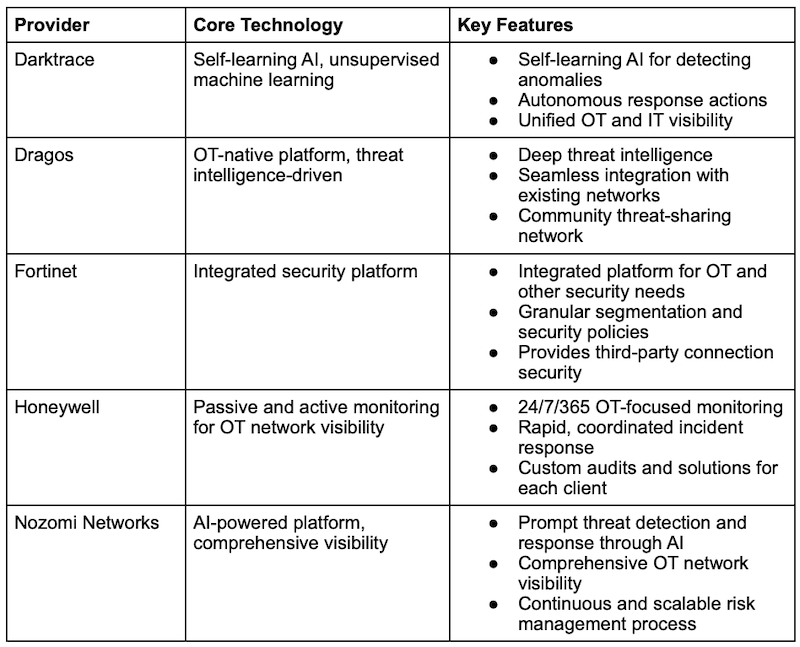 OT Threat Detection and Response Tools at a Glance