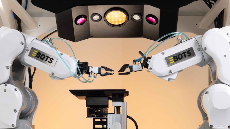Ebots is a self-learning platform combining 3D computer vision, cognitive processing, and synchronized dual-arm coordination to execute complex assembly processes across any product configuration.