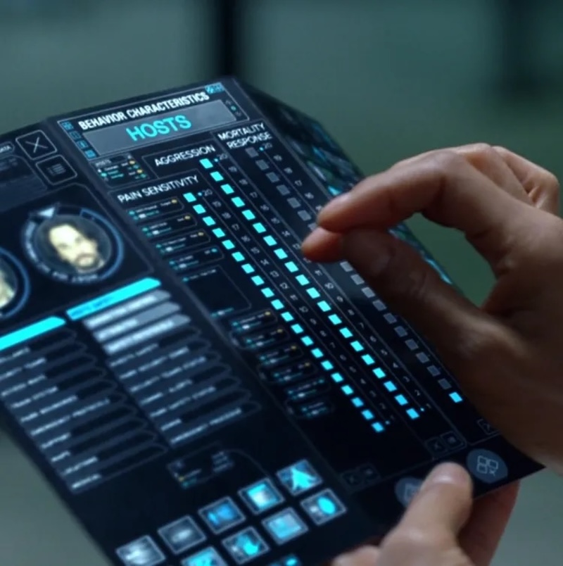 Interestingly, the trifold device concept has already made a cameo in pop culture in the TV series Westworld, in which engineers use a tablet-sized “trifold” device for monitoring android hosts and park systems, complete with three display panels folded together.
