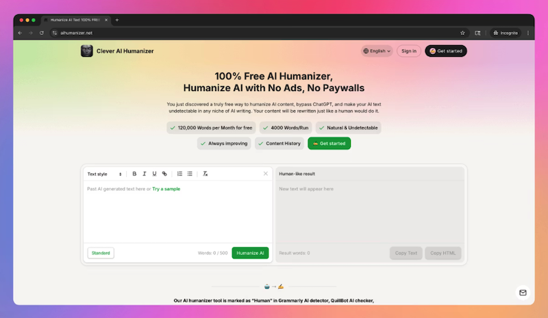 The platform often appeals to professional users seeking the best AI humanizer tool for editorial refinement within corporate workflows. Its outputs offer a good balance between clarity and stylistic diversity, making it highly adaptable across content types.