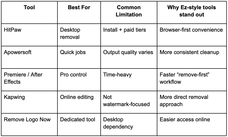 Video Watermark Remover Competitor Comparison