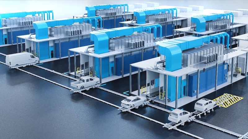 CEER can swiftly incorporate new models and easily scale production capacity with the paint shop of the future. The key lies in implementing a modular concept, where flexible EcoProBooth boxes replace traditional lines with their rigid cycle times.