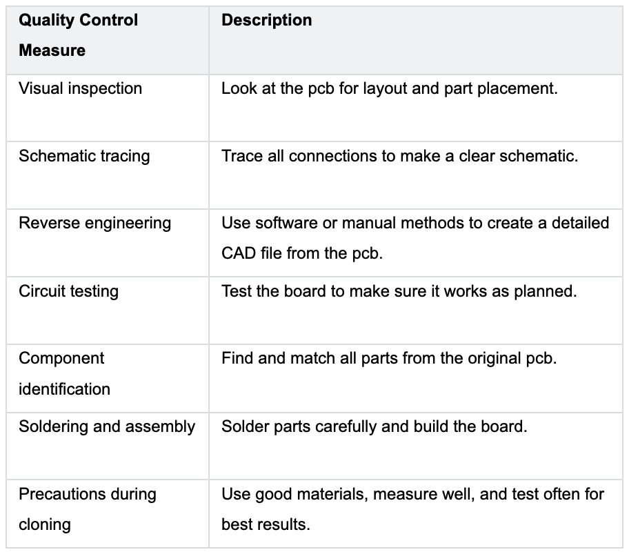 You need to check your work at every step. Good quality control keeps your pcb working well. Use this table to guide your checks: