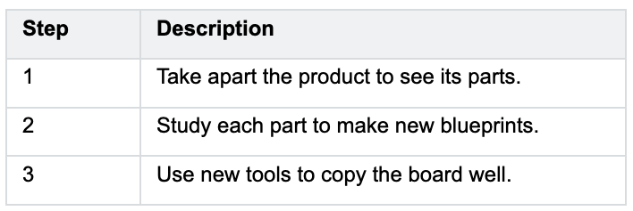 - Use a clear step-by-step process for reverse engineering. List all parts, take pictures of the PCB, and copy the layout to be accurate.