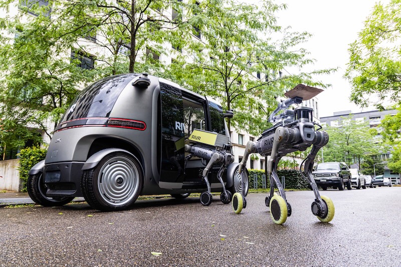 Rivr, an ETH Zurich spinout, develops quadruped delivery robots capable of navigating real-world environments, including steps, curbs, and uneven terrain. The machines are designed to accompany human drivers and handle the final stage of delivery – often considered one of the most time-consuming and labor-intensive parts of logistics operations.