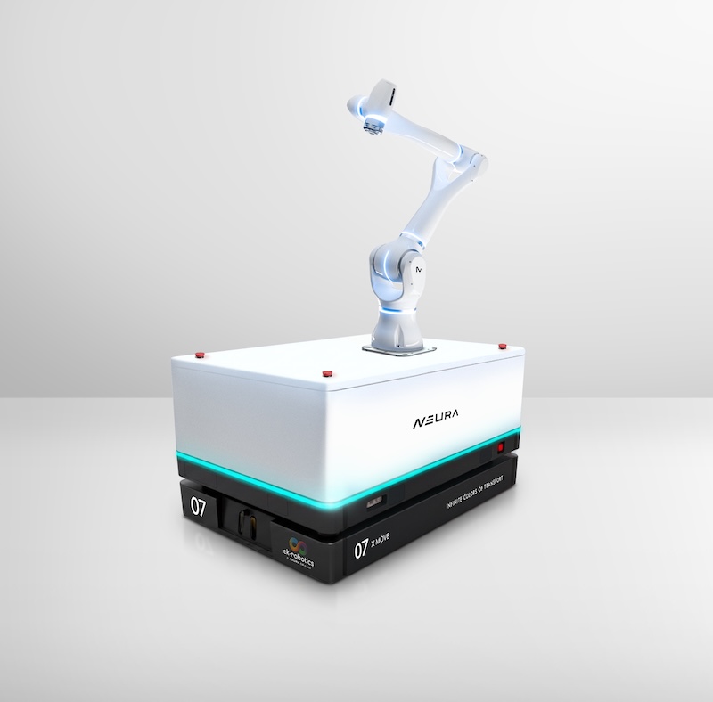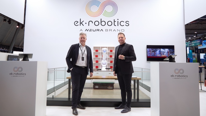 Neura Mobile Robots has presented an application for mobile manipulation in intralogistics for the first time at LogiMAT. Under its ek Robotics brand, Neura demonstrated how mobile transport robotics and cognitive robotics can be combined into a seamless system, enabling a new level of automation.