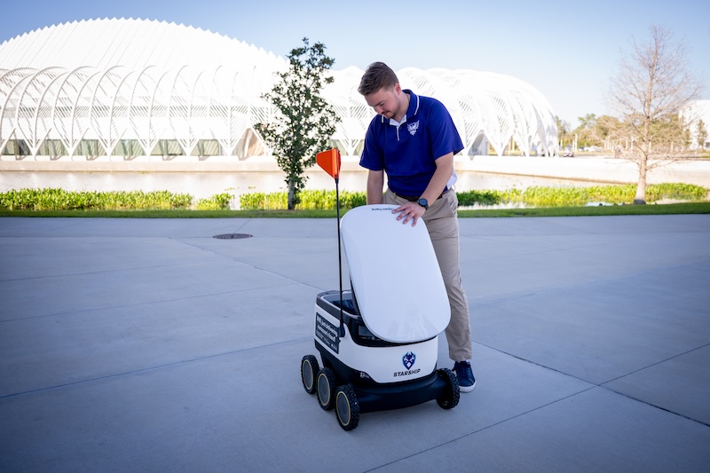 “These food delivery robots offer an exciting new way for our busy students, faculty and staff to quickly and conveniently enjoy a great meal, no matter where they are,” said Dr. Kerri Demeri, Florida Poly’s director of auxiliary enterprises. “Partnerships like this help us bring innovation directly to our students in meaningful, everyday ways.”