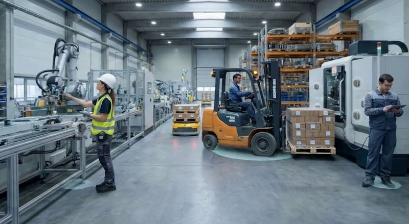A forklift driven by a human, an AGV following a programmed path, and an AMR making autonomous decisions all have different reaction times, different safety logic, and different communication models. When they share the same space, the safety system has to provide consistent, real-time awareness to all of them, without delay and without ambiguity.