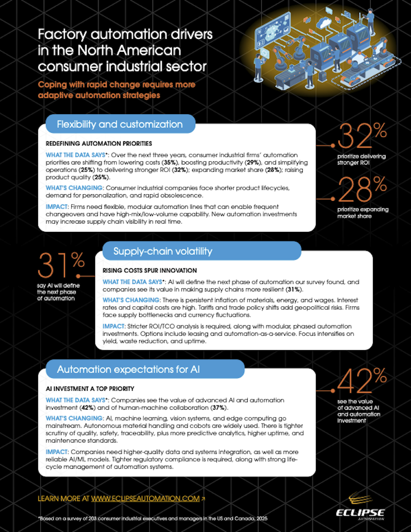 A new report from Eclipse Automation suggests that while factory automation is now widespread across North America, only a small proportion of manufacturers are achieving meaningful outcomes from their investments.