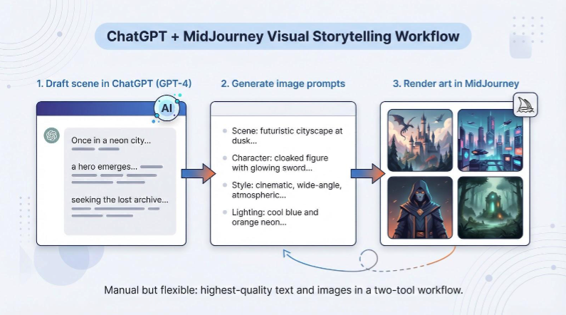 Sometimes the ideal toolkit is the one you assemble. Pair ChatGPT for prose with MidJourney for images, and you reach a quality ceiling no all-in-one platform has matched.